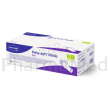 Gants d'examen et de protection à usage unique, en nitrile synthétique sans latex ni poudre, offrant un confort optimal et une haute sécurité. Leur traitement interne au chlore permet un enfilage aisé.