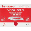 La lame chirurgicale stérile n°23, fabriquée en acier carbone de qualité chirurgicale par Swann-Morton, est conçue pour un usage unique. Sa forme large et légèrement incurvée permet de réaliser des incisions étendues avec une grande précision.