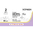 VICRYL® PLUS VCP482H est une suture résorbable tressée, de couleur violette, mesurant 90 cm et dotée d’une aiguille CP-1 en acier inoxydable, à pointe reversée coupante de 36 mm.