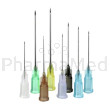 Technische kenmerken: roestvrij Cr-Ni staal met dunne wand (Ø 0,90 mm), lichte siliconencoating, lange 3-vlak geslepen punt voor nauwkeurige penetratie, transparante Luer-Lock hub conform ISO 6009 (kleurcode geel).